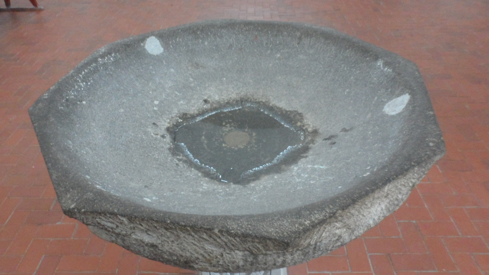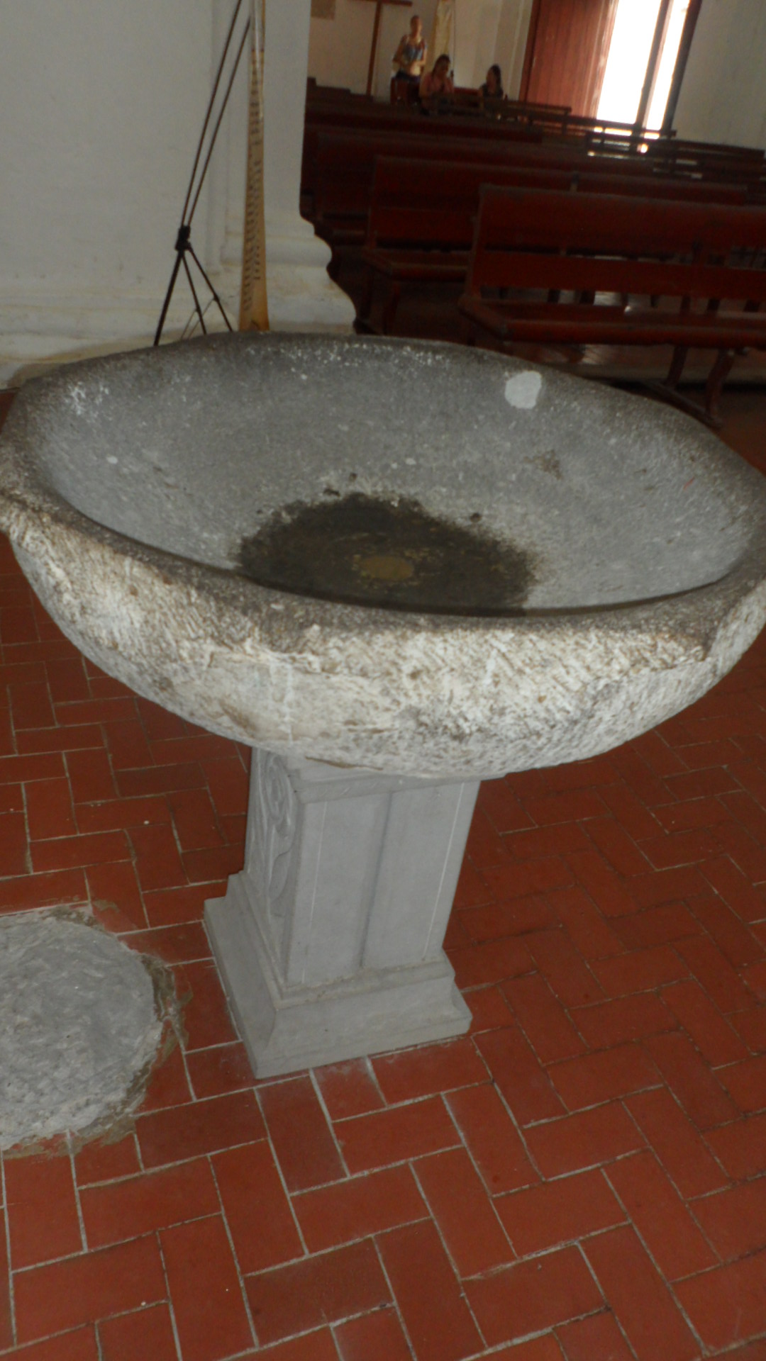 Las primeras dos se encuentran en la entrada y la última a un costado del Cristo, está es utilizada para bautizar, están elaboradas de piedra volcánica y labradas de forma octagonal.