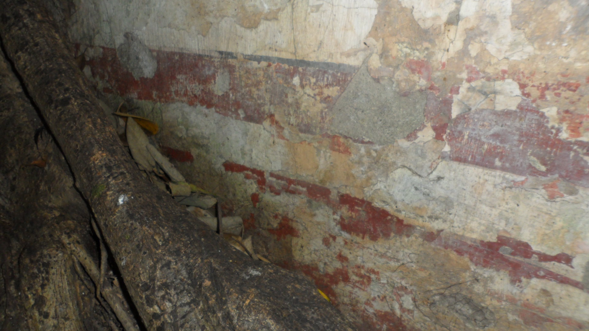 Observen muy bien la imagen las líneas que se ven de color café son restos de pintura que aún siguen cubriendo la casa, es algo impresionante que después de tantos años siga viéndose de la misma forma que cuando la encontraron, expreso el guía.