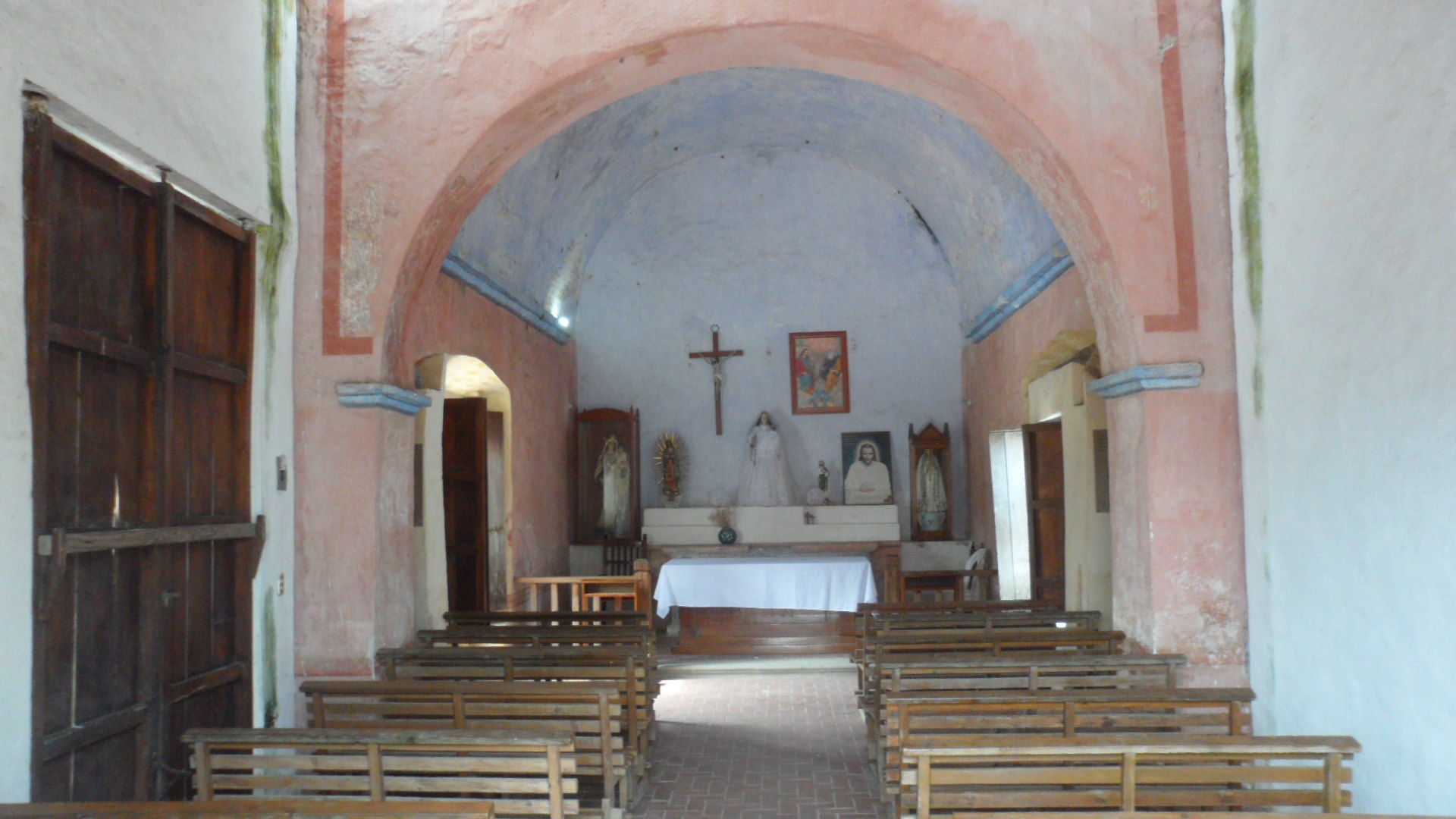 Dentro de ella resaltan tres pilas bautismales hechas por manos indígenas.