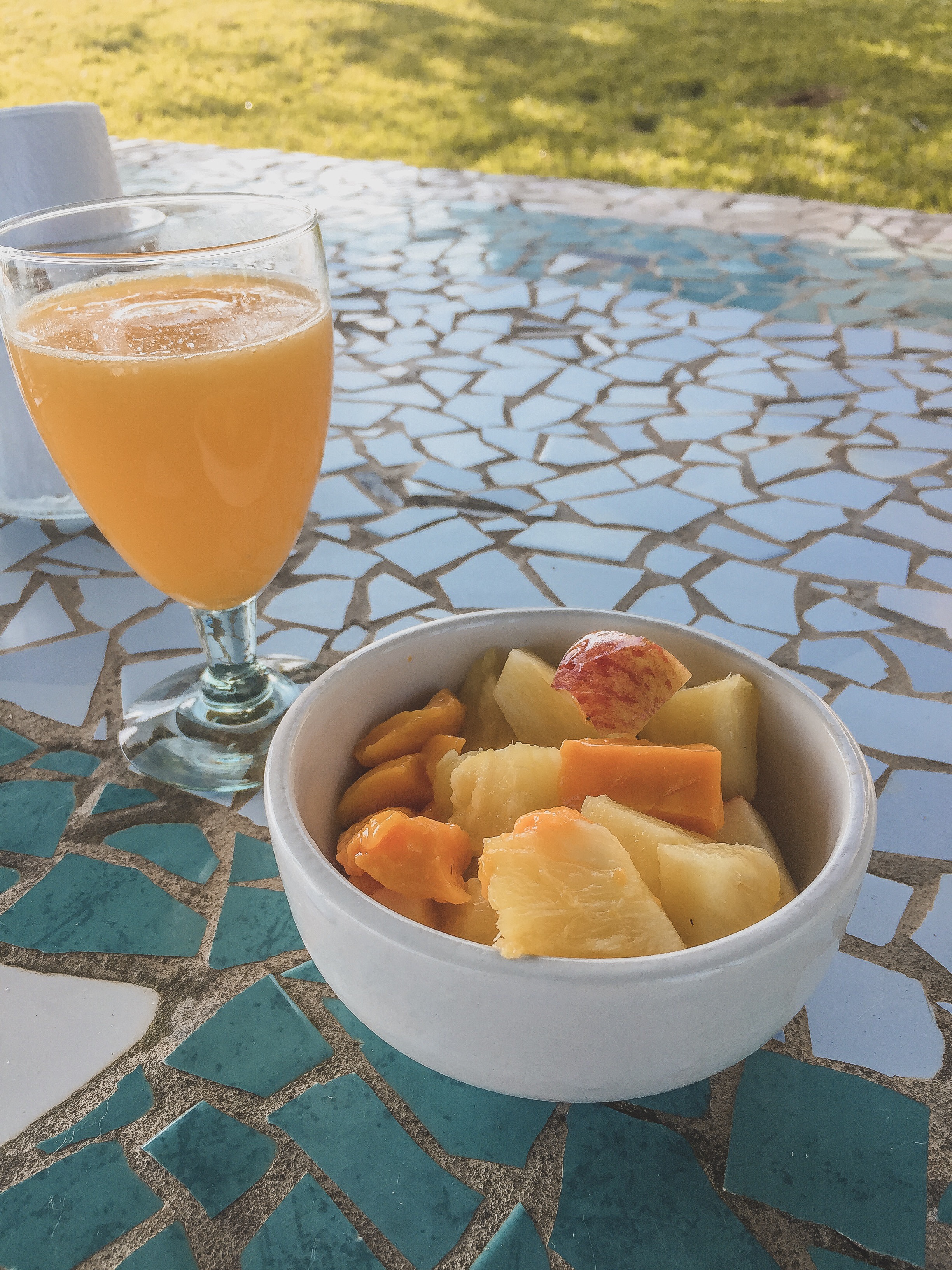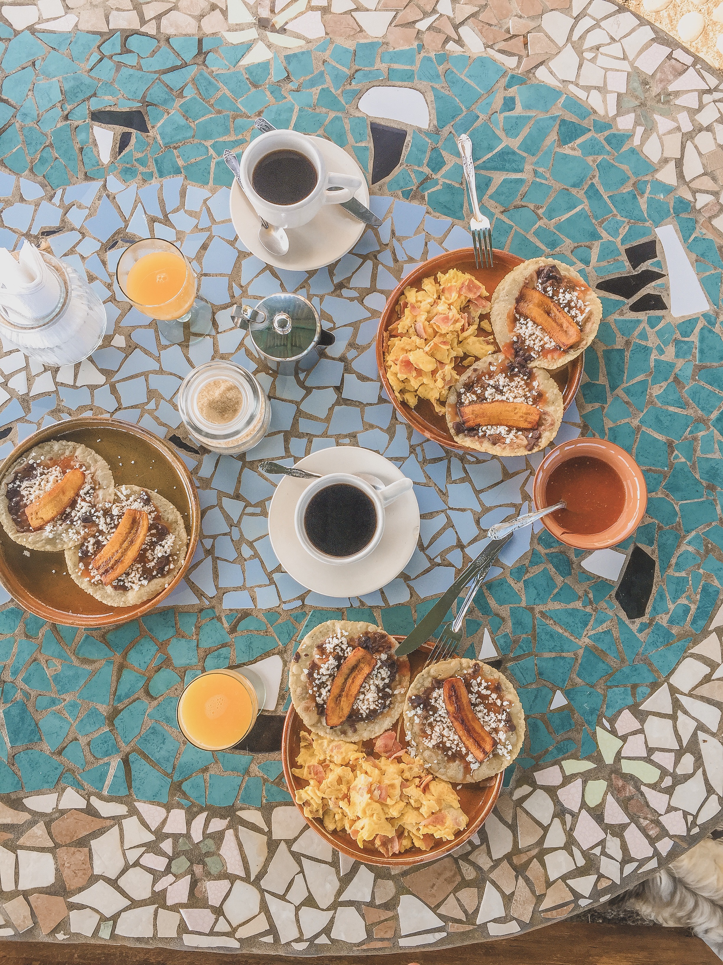 ¿Venden comida? Por supuesto y está súper deliciosa, los desayunos valen $80 MXN y están súper completos, te sirven huevos y picaditas, fruta, jugo y café, hay otra opción de desayunos para tragones como yo que incluye un pan casero, ese paquete está en $100 MXN.