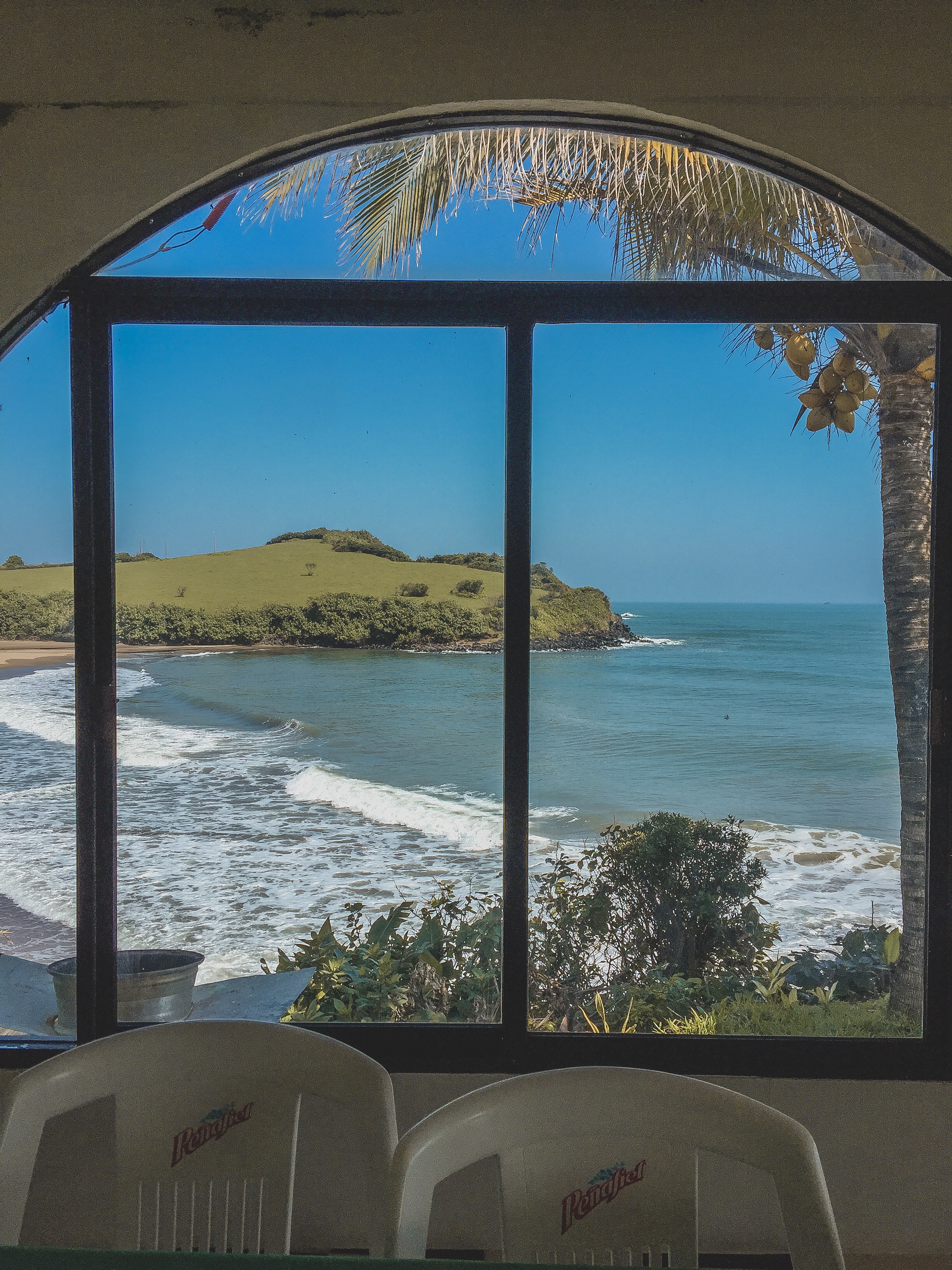 Pueden desayunar en el comedor que tiene esta vista o en la parte de afuera que tiene un mesa tipo familiar al aire libre, yo les recomiendo comer afuera porque pueden sentir el aire, escuchar las olas y disfrutar del paisaje.
